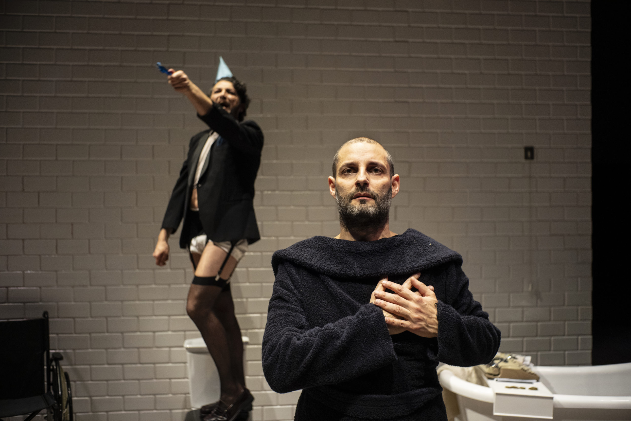 Argante grida: «Io sono il malato!». Tindaro Granata è il protagonista de Il malato immaginario di Molière uomo che teme la morte e si protegge dai propri mali con la risata, in un mix di ansie, gelosie e malinconie. La regia interpreta la condizione del personaggio come la voce di un artista che si confronta con la società, tra attese e rifiuti, mostrando quanto il teatro possa essere strumento di difesa e di espressione. Il testo è presentato integralmente e include la supplica di Molière al Re, in cui chiedeva di poter continuare a scrivere e a rappresentare. Tra comicità e ombre, si manifesta la tensione tra vita e arte, tra finzione e realtà, per una riflessione sulla vulnerabilità, sul bisogno di protezione e sul ruolo del teatro come spazio di espressione, resistenza e dialogo con il presente.